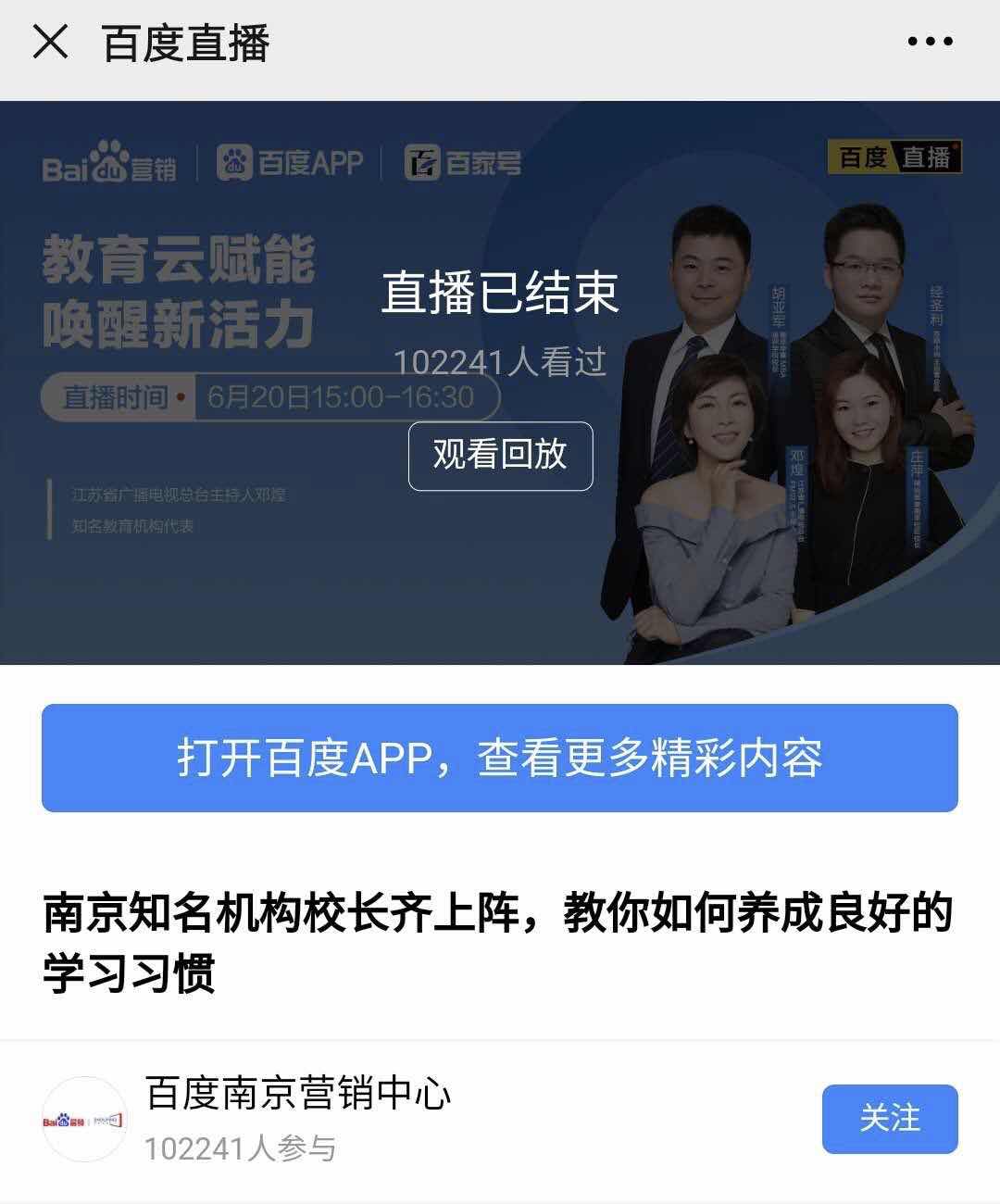 百度營銷助力南京教育培訓(xùn)業(yè)復(fù)蘇公益計(jì)劃直播專場圓滿落幕!