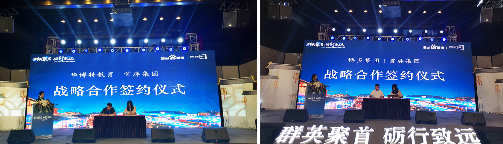 緊接著,杭州首屏科技有限公司總經(jīng)理高源女士也依次與杭州市余杭區(qū)華博特專修學(xué)校、浙江博多投資管理有限公司,兩家優(yōu)質(zhì)品牌企業(yè)簽訂了長(zhǎng)期戰(zhàn)略合作協(xié)議。