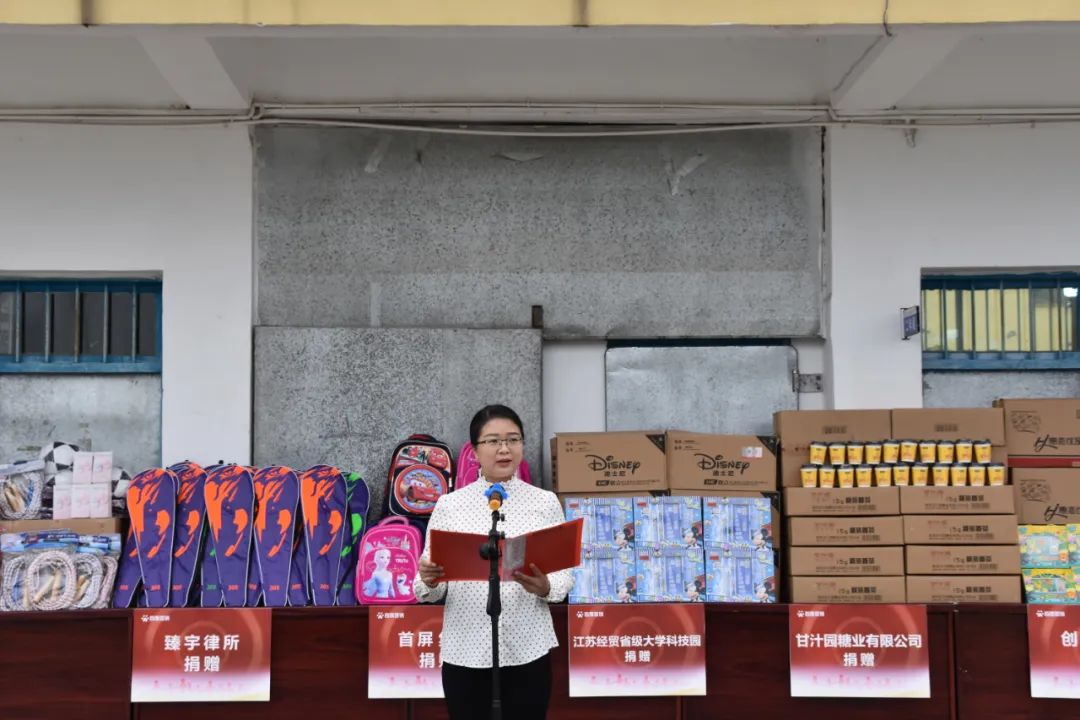 此次公益行動(dòng)匯聚社會(huì)多方力量及愛心,廣大愛心企業(yè)也紛紛向孩子們捐贈(zèng)愛心助學(xué)物資。其中首屏集團(tuán)捐贈(zèng)的愛心大禮包及生活物資、全給凈化捐贈(zèng)的凈水器、清沐旅行酒店集團(tuán)捐贈(zèng)的學(xué)生校服、名易家通訊捐贈(zèng)的電風(fēng)扇和乒乓球桌、江蘇臻宇律所捐贈(zèng)的運(yùn)動(dòng)器材、甘汁園捐贈(zèng)的紅糖姜汁、六品堂 | 六品書院捐贈(zèng)的書法寫字大禮包、江蘇經(jīng)貿(mào)省級(jí)大學(xué)科技園捐贈(zèng)的學(xué)習(xí)用具、海闊企業(yè)管理捐贈(zèng)的文具禮盒、杭州創(chuàng)重科技捐贈(zèng)的兒童讀物、杭州旭眾機(jī)械捐贈(zèng)的畫筆禮盒等,為孩子們送去一片溫暖。