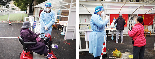 由于近期南京接連不斷的陰雨以及驟降的氣溫,給市民采集核酸帶來一些不便,面對(duì)個(gè)別市民因排隊(duì)時(shí)間久而產(chǎn)生的抱怨與不理解,他們細(xì)心講解、耐心開導(dǎo)、貼心安撫大家的情緒,確保核酸檢測工作有條不紊地進(jìn)行。